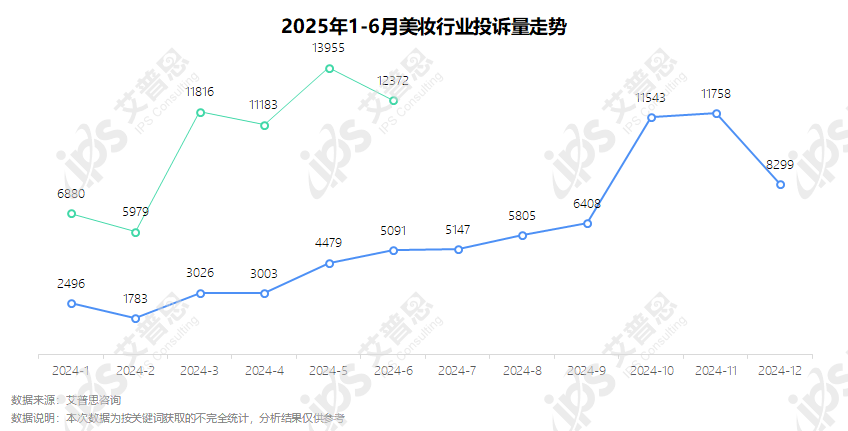 2025年5-6月美妆行业投诉量:较去年同期大幅增长175%