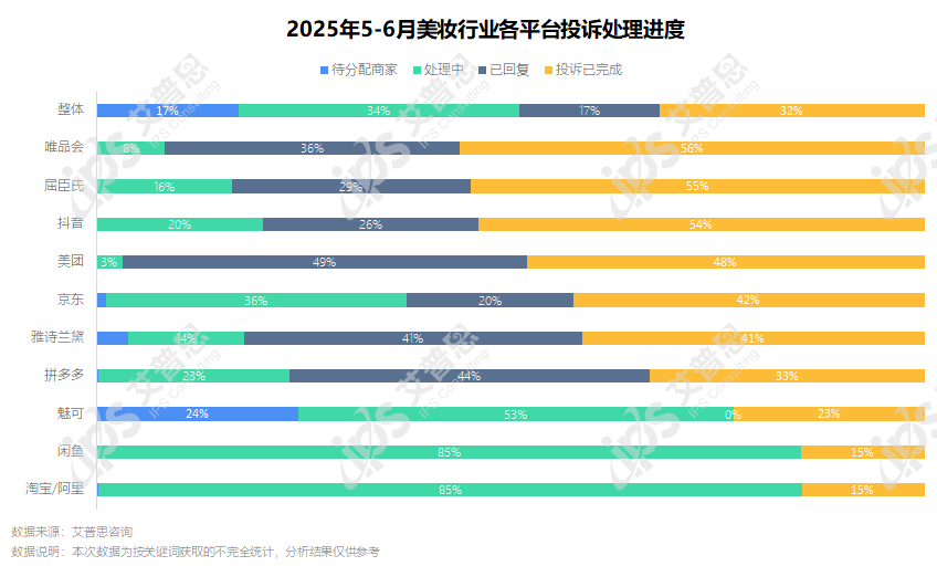 图9:2025年5-6月美妆行业各平台投诉处理进度