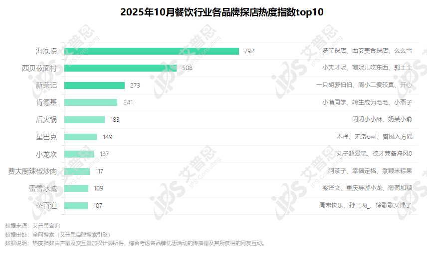 图3.2025年10月餐饮行业各品牌探店热度指数top10