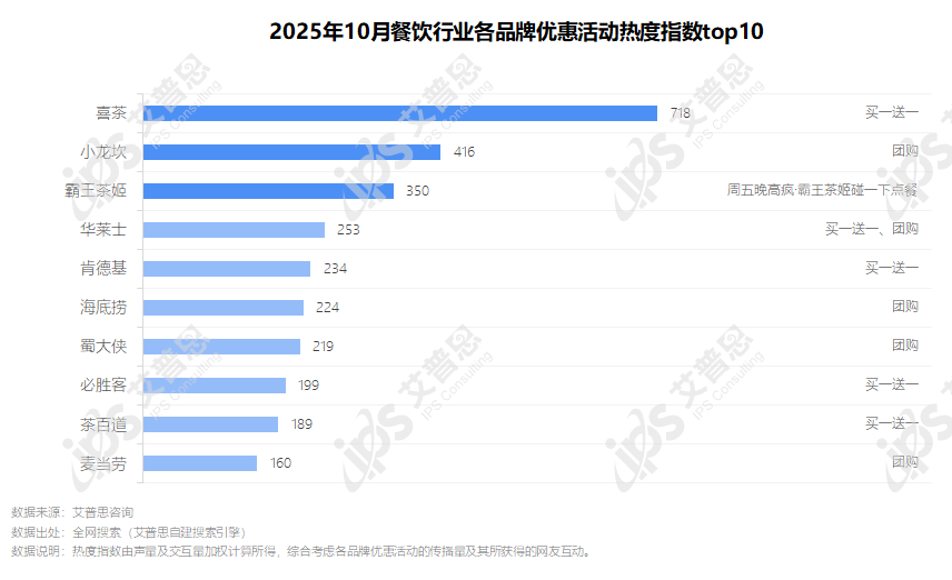 图1.2025年10月餐饮品牌优惠活动热度指数top10