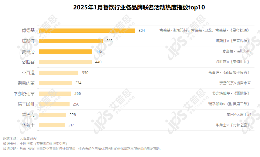 图2.2025年1月餐饮品牌联名活动热度指数top10
