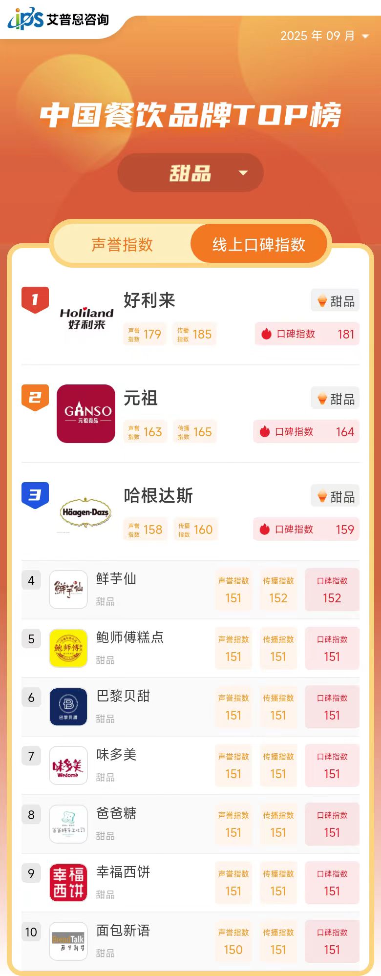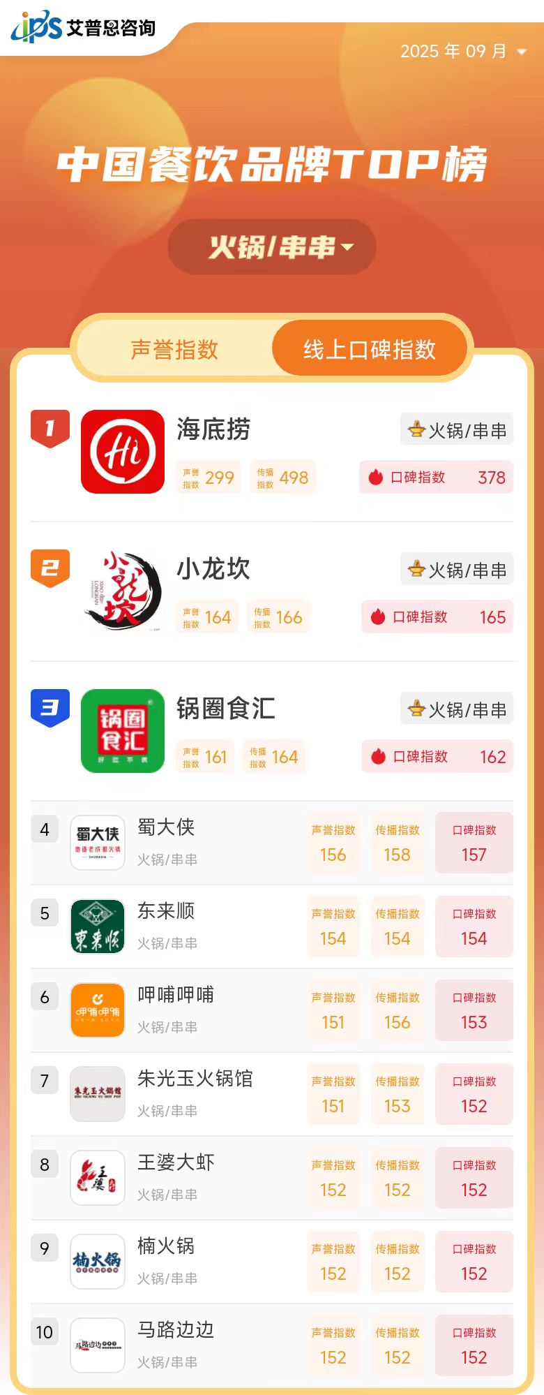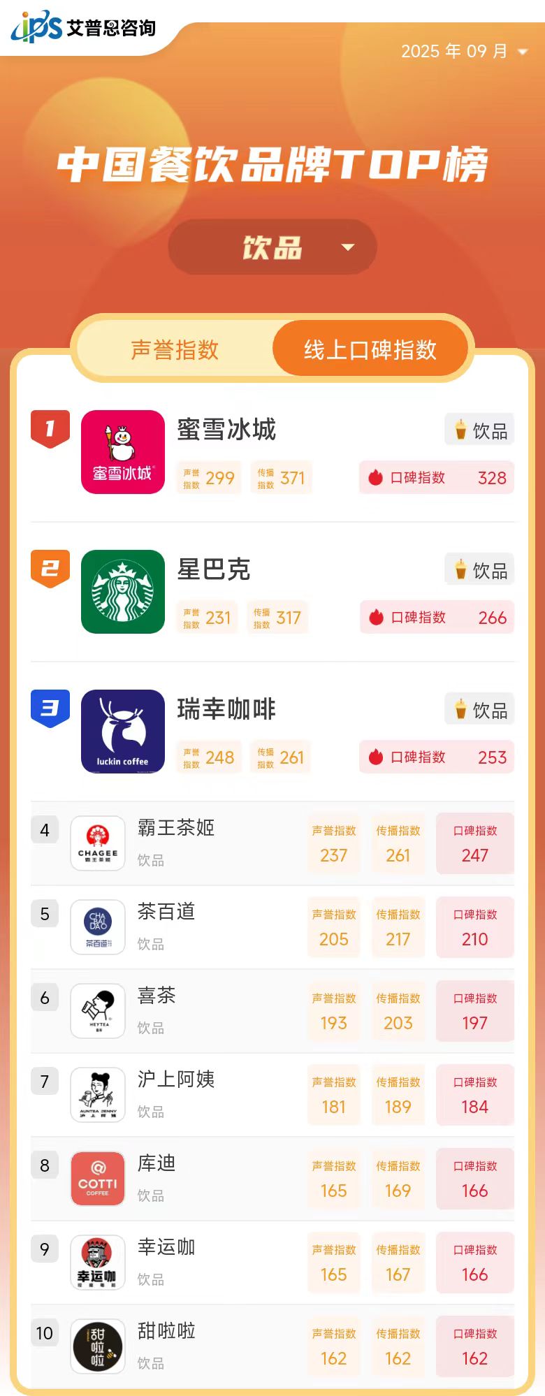 线上口碑指数TOP10