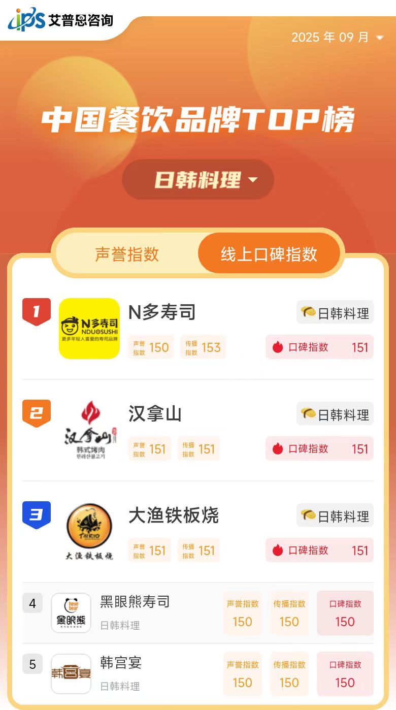 线上口碑指数TOP5