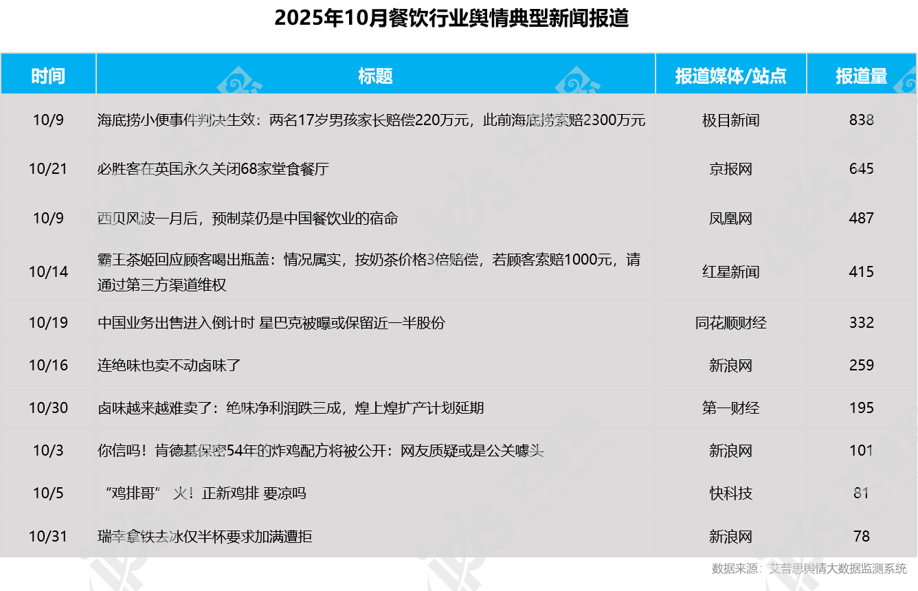 以上内容节选自《艾普思咨询:2025年9月餐饮行业舆情监测报告》(全文22页,共5,622字)。