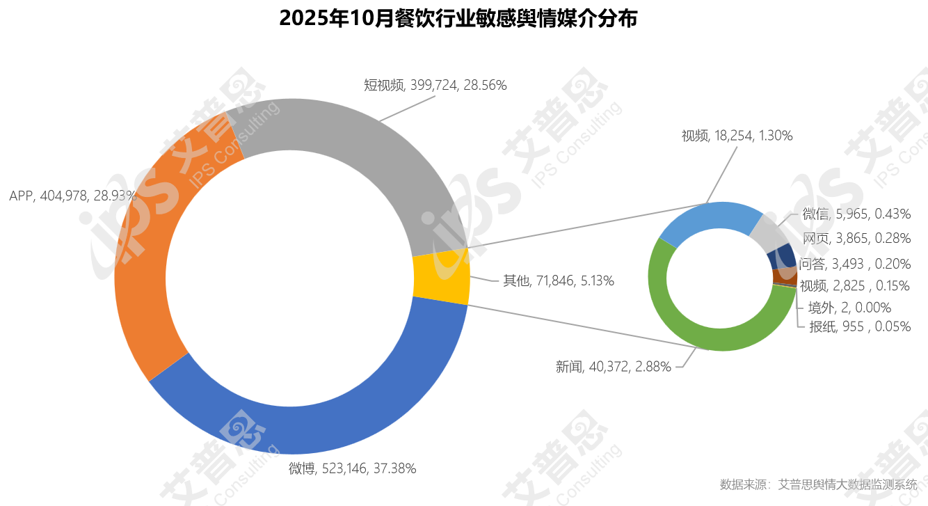 图3 2025年10月餐饮行业舆情总量媒介分布