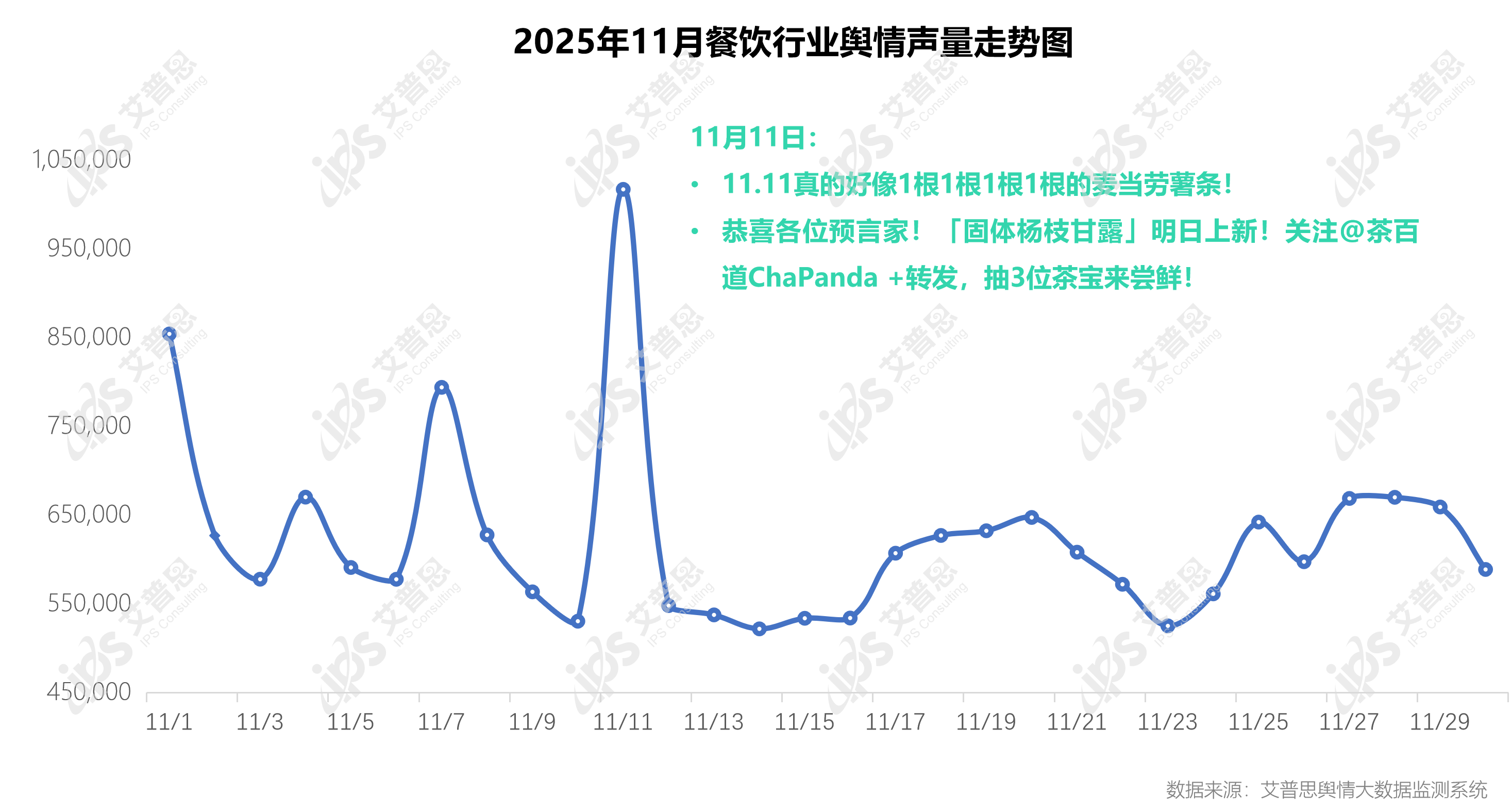 图10 2025年11月餐饮行业抖音舆情声量走势图