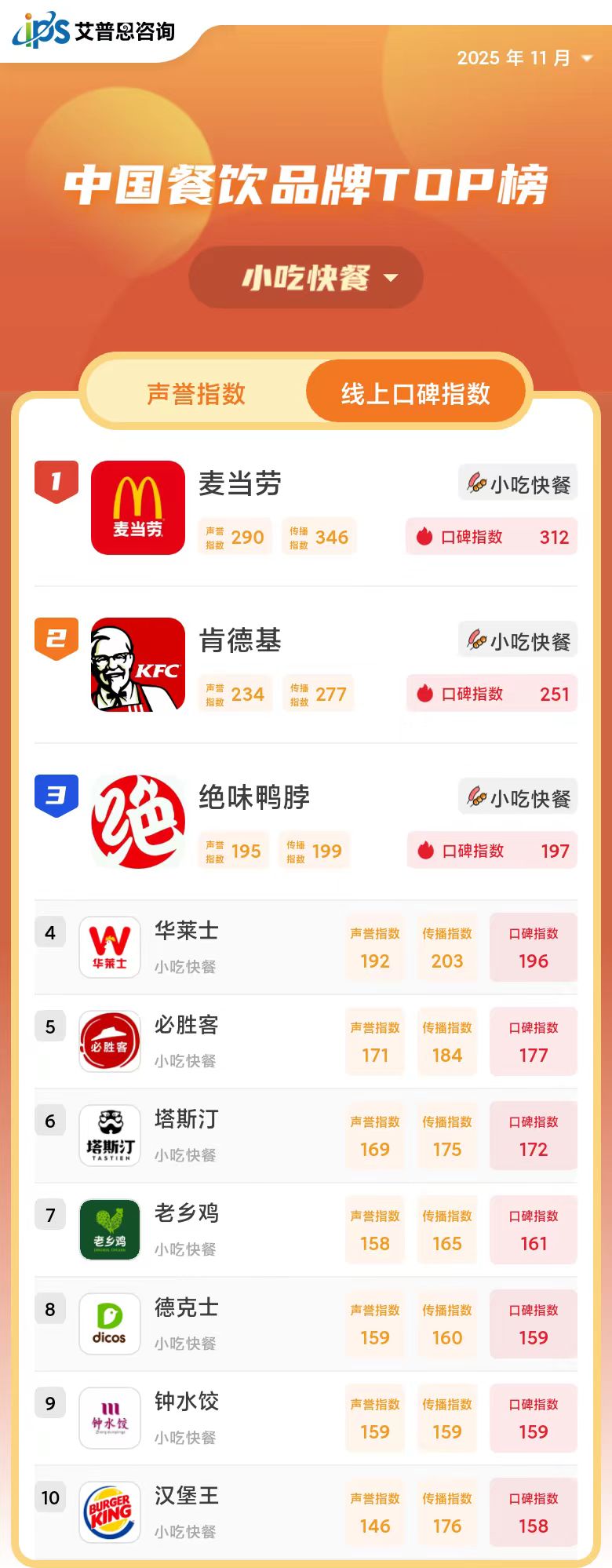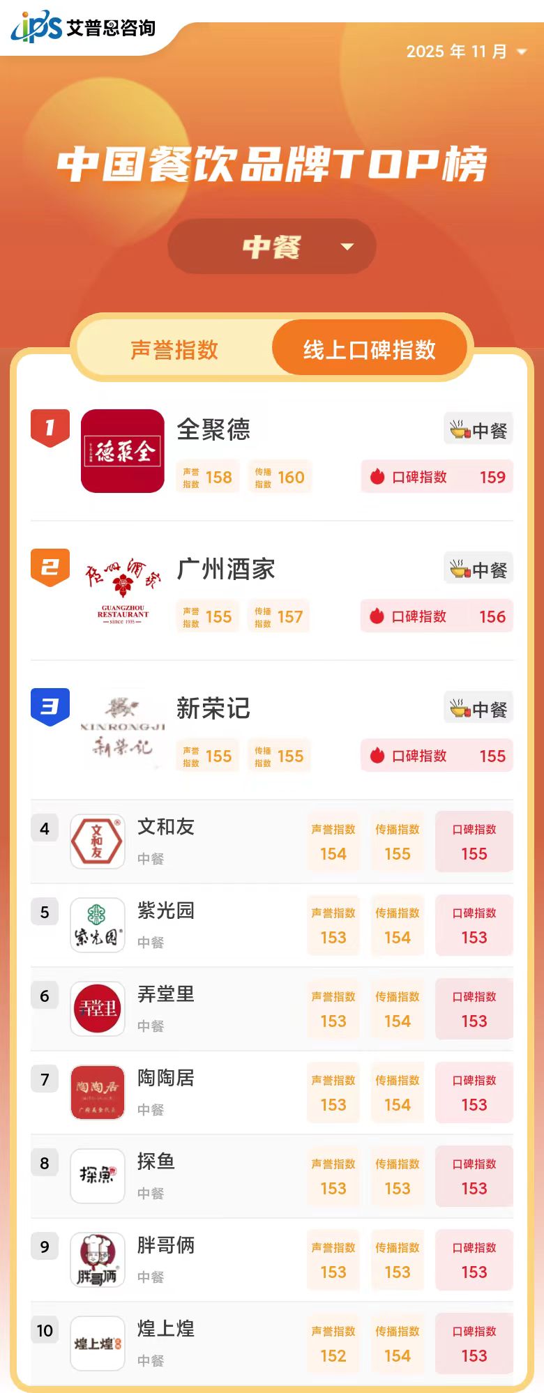 继《中国房地产品牌线上口碑指数排行榜》之后,我们发布了原创指数“艾普思品牌线上口碑指数”的又一应用榜单——《中国餐饮品牌线上口碑指数排行榜》。国家统计局发布的数据显示,2024年全年,全国餐饮收入55718亿元,同比增长5.3%,餐饮消费潜力持续恢复。与此同时,据红餐网数据显示,2024年有近300万家餐饮门店关闭,创下历史新高。行业整体收入实现增长,门店关闭的态势却不断加剧,反映出当下餐饮市场竞争已经进入白热化阶段。榜单旨在依托互联网文本大数据分析技术,助力餐饮企业在后疫情时代精准洞察品牌线上口碑表现,加强消费者聆听,有针对性地实施产品及品牌策略,增强抗风险能力,促进品牌持续健康发展。