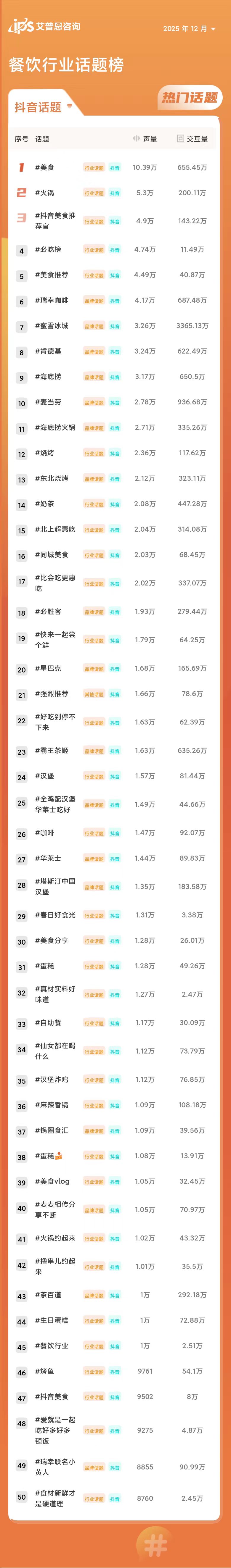 热门餐饮话题TOP50