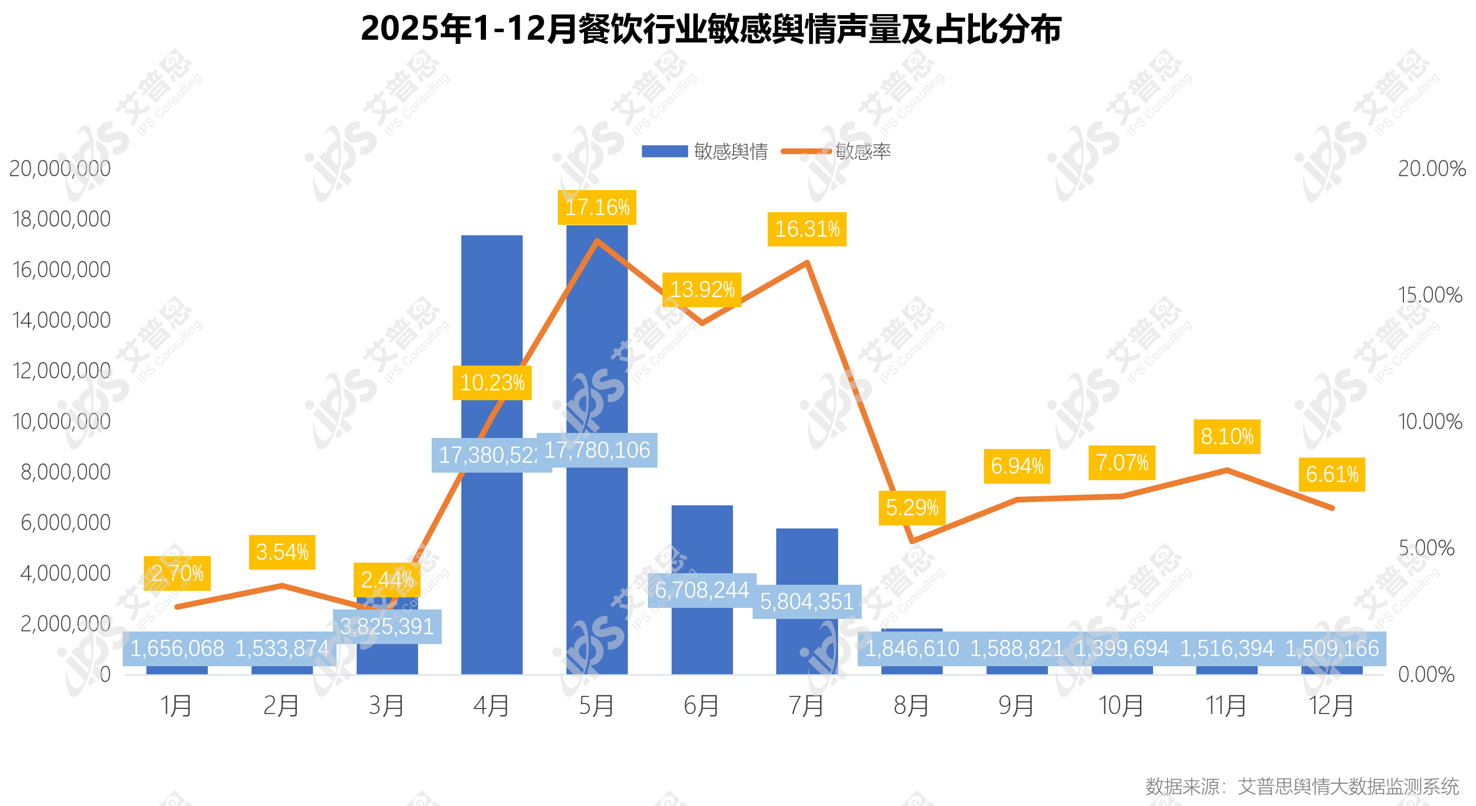 图3 2025年1-12月餐饮行业敏感舆情声量及占比分布