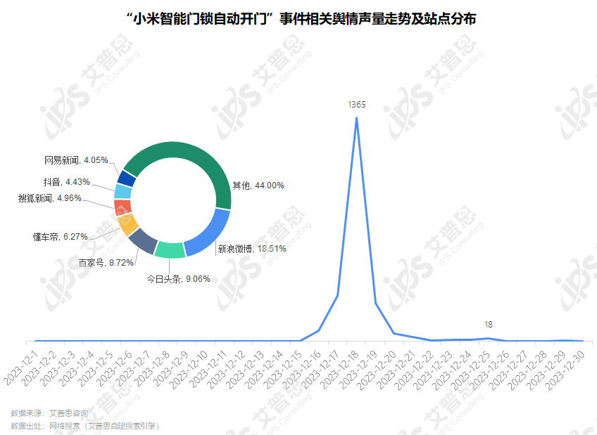 图15.“小米智能门锁自动开门”事件相关舆情声量走势及站点分布